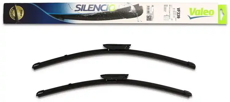 Nowe wycieraczki ;  zapakowane w oryginalne opakowanie producenta. Cena zakupu dotyczy 1kompletu (strona kierowcy i pasażera).Wycieraczki Valeo Silencio na przednią szybę mają  konstrukcję aerodynamiczną i nie posiadają klasycznych przegubów. Na całej ich długości znajduje się spojler, który ma za zadanie dociskać wycieraczkę do szyby, nawet przy dużych prędkościach. W konstrukcji wycieraczki zastosowano stalowe listwy, dzięki którym wycieraczka  dobrze przylega do szyby  ( regularnie rozłożona  siła  nacisku na całej długości pióra wycieraczki). Specjalny skład gumy sprawia, że doskonale spisują się one w każdych warunkach atmosferycznych; dodatkowo guma ta posiada specjalne struktury (kanaliki), które rozprowadzają płyn  do spryskiwaczy po całej szybie. Wycieraczki montuje siębardzo szybko i sprawnie; obrazkowa instrukcja montażu znajduje się na ichopakowaniu. Zalety wycieraczek Valeo Silencio:- precyzyjne wycieranie szyby- zmniejszenie szumu powietrza poprzez bardziej opływowy kształt- nie zamarzanie zimą poszczególnych elementów wycieraczki (jej konstrukcja składa się z 6-7 elementów)- nowoczesny wygląd- spojler na całej długości, poprawiający przyleganie wycieraczki do powierzchni szyby przy dużych  prędkościach.Jak dbać o wycieraczki:- pamiętaj, aby dbać o gumę wycieraczki usuwając z niej brud, owady itp., które osiadły podczas jej pracy (wykorzystać można do tego łagodny detergent); zapominanie o usuwaniu zanieczyszczeń, może doprowadzić do uszkodzenia gumy wycieraczki- nigdy nie używaj wycieraczek, gdy szyba jest sucha;  tarcie gumy po suchej szybie może doprowadzić do szybkiego jej zużycia- jeżeli wycieraczka na szybie podskakuje, może to być oznaką, że ramię wycieraczki jest skrzywione; w takim przypadku należy dokonać jego regulacji- jeżeli planujesz pozostawienie samochodu  na słońcu przez kilka dni, ustaw wycieraczki tak, aby nie stykały się z szybą- po wizycie na myjni, pamiętaj, aby zawsze dokładnie oczyścić szybę, ponieważ znajdujący się na niej wosk, może powodować przeskakiwanie wycieraczki- pamiętaj również, aby nie uruchamiać wycieraczek na zamarzniętej szybie; może to bowiem doprowadzić do ich uszkodzenia lub oderwania gumy od mocowania.