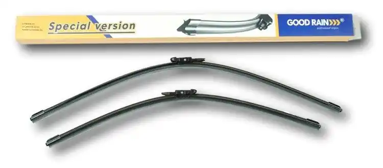 Nowe wycieraczki ;  zapakowane woryginalne opakowanie producenta. Cena zakupu dotyczy 1kompletu (stronakierowcy i pasażera).Wycieraczki Good Rain na przednią szybęsamochodu posiadają  konstrukcję bezprzegubową. Guma w wycieraczkachpokryta jest specjalną powłoką, dzięki, której szyba jest bardzo dobrzeczyszczona. Na całej długości wycieraczki znajduje się spojler, któregozadaniem jest dociskanie jej do powierzchni szyby, nawet przy dużychprędkościach. Duży wpływ na dobre przyleganie wycieraczek do szyby samochodu marównież zastosowana w ich konstrukcji specjalna prowadnica, dzięki, której siłanacisku jest  regularnie rozłożona na całej długości pióra wycieraczki. Stałynadzór nad  procesem  produkcji oraz wysokiej jakości produkty użytedo ich wykonania sprawiają , że wycieraczki te, profesjonalnie spisują się wkażdych warunkach atmosferycznych.   Zalety wycieraczek Good Rain:- bardzo łatwy montażna ramiona- wysoka jakość za przystępną cenę- skuteczne wycieranie szyby- zmniejszenie szumu powietrza poprzez bardziejopływowy kształt- zaawansowana technologia i nowoczesnywyglądJak dbać o wycieraczki:- pamiętaj, aby dbać o gumę wycieraczkiusuwając z niej brud, owady itp., które osiadły podczas jej pracy (wykorzystaćmożna do tego łagodny detergent); zapominanie o usuwaniu zanieczyszczeń, możedoprowadzić do uszkodzenia gumy wycieraczki- nigdy nie używaj wycieraczek, gdyszyba jest sucha;  tarcie gumy po suchej szybie może doprowadzić doszybkiego jej zużycia- jeżeli wycieraczka na szybiepodskakuje, może to być oznaką, że ramię wycieraczki jest skrzywione; w takimprzypadku należy dokonać jego regulacji- jeżeli planujesz pozostawieniesamochodu  na słońcu przez kilka dni, ustaw wycieraczki tak, aby niestykały się z szybą- po wizycie na myjni, pamiętaj, abyzawsze dokładnie oczyścić szybę, ponieważ znajdujący się na niej wosk, możepowodować przeskakiwanie wycieraczki- pamiętaj również,aby nie uruchamiać wycieraczek  na zamarzniętej szybie; może to bowiemdoprowadzić do ich uszkodzenia lub oderwania gumy od mocowania.