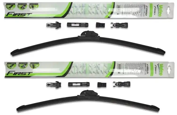 Nowe wycieraczki; zapakowane w oryginalne opakowanie producenta. Cena zakupu dotyczy 1kompletu (strona kierowcy i pasażera).Wycieraczki Valeo First Multiconnection to wysoka jakość i atrakcyjna cena.Bezszkieletowe wycieraczki Valeo First posiadają metalowe listwy, które zapewniają optymalny docisk do powierzchni szyby, a tym samym doskonałą widoczność nawet w niekorzystnych warunkach atmosferycznych.Gumowe pióra wycieraczek wykonane są ze specjalnej mieszanki obrabianego kauczuku, co znacznie poprawia skuteczność czyszczenia powierzchni szyby.Innowacyjny kształt spojlera w technologii „PYRAMID” zapewnia optymalny docisk do powierzchni szyby oraz cichą pracę nawet przy dużych prędkościach.Na opakowaniu wycieraczek First Multiconnection podany jest sposób ich montażu oraz przykładowa lista zastosowań.Wycieraczki First zostały zaprojektowane i wyprodukowane na całkowicie zautomatyzowanych liniach montażowych w nowych fabrykach Valeo.W opakowaniu wycieraczek First Multiconnection znajduje się kilka adapterów. Klient samodzielnie wybiera i montuje właściwy adapter. Zalety wycieraczek Valeo First Multiconnection:- bardzo łatwy montaż- precyzyjne wycieranie szyby- zmniejszenie szumu powietrza poprzez bardziej opływowy kształt- nie zamarzanie zimą poszczególnych elementów wycieraczki- nowoczesny wygląd- spojler na całej długości, poprawiający przyleganie wycieraczki do powierzchni szyby przy dużych  prędkościach.Jak dbać o wycieraczki:- pamiętaj, aby dbać o gumę wycieraczki usuwając z niej brud, owady itp., które osiadły podczas jej pracy (wykorzystać można do tego łagodny detergent); zapominanie o usuwaniu zanieczyszczeń, może doprowadzić do uszkodzenia gumy wycieraczki- nigdy nie używaj wycieraczek, gdy szyba jest sucha;  tarcie gumy po suchej szybie może doprowadzić do szybkiego jej zużycia- jeżeli wycieraczka na szybie podskakuje, może to być oznaką, że ramię wycieraczki jest skrzywione; w takim przypadku należy dokonać jego regulacji- jeżeli planujesz pozostawienie samochodu  na słońcu przez kilka dni, ustaw wycieraczki tak, aby nie stykały się z szybą- po wizycie na myjni, pamiętaj, aby zawsze dokładnie oczyścić szybę, ponieważ znajdujący się na niej wosk, może powodować przeskakiwanie wycieraczki- pamiętaj również, aby nie uruchamiać wycieraczek na zamarzniętej szybie; może to bowiem doprowadzić do ich uszkodzenia lub oderwania gumy od mocowania.