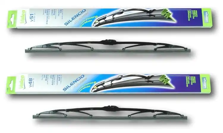 Nowe wycieraczki – zapakowane w oryginalne opakowanie producenta – cena zakupu dotyczy 1kompletu (strona kierowcy i pasażera).Wycieraczki Valeo Silencio na przednią szybę posiadają konstrukcję klasyczną i zbudowane są z metalowych przegubów. Specjalny skład gumy sprawia, że doskonale spisują się w każdych warunkach atmosferycznych. Guma posiada specjalne struktury(kanaliki) do rozprowadzania „płynu do spryskiwaczy” po całej powierzchni szyby. Ponadto guma wycieraczki pokryta  została specjalną warstwą grafitu zapewniającą optymalne wycieranie szyby. Gama wycieraczek Valeo Silencio to najwyżej sklasyfikowana gama klasycznych wycieraczek firmy Valeo. Wycieraczki posiadają wskaźnik zużycia, który stopniowo zmienia kolor z czarnego na żółty, sygnalizując potrzebę ewentualnej ich wymiany. Wycieraczki montuje się bardzo szybko i sprawnie; obrazkowa instrukcja montażu znajduje się na ich opakowaniu.Zalety wycieraczek Valeo Silencio:- bardzo łatwy montaż- precyzyjne wycieranie szyby- najwyższa jakość wykonania oraz zastosowanych materiałówJak dbać o wycieraczki:- pamiętaj, aby dbać o gumę wycieraczki usuwając z niej brud, owady itp., które osiadły podczas jej pracy (wykorzystać można do tego łagodny detergent); zapominanie o usuwaniu zanieczyszczeń, może doprowadzić do uszkodzenia gumy wycieraczki- nigdy nie używaj wycieraczek, gdy szyba jest sucha;  tarcie gumy po suchej szybie może doprowadzić do szybkiego jej zużycia- jeżeli wycieraczka na szybie podskakuje, może to być oznaką, że ramię wycieraczki jest skrzywione; w takim przypadku należy dokonać jego regulacji- jeżeli planujesz pozostawienie samochodu na słońcu przez kilka dni, ustaw wycieraczki tak, aby nie stykały się z szybą- po wizycie na myjni, pamiętaj, aby zawsze dokładnie oczyścić szybę, ponieważ znajdujący się na niej wosk, może powodować przeskakiwanie wycieraczki- pamiętaj również, aby nie uruchamiać wycieraczek na zamarzniętej szybie, może to bowiem doprowadzić do ich uszkodzenia lub oderwania gumy od mocowania.