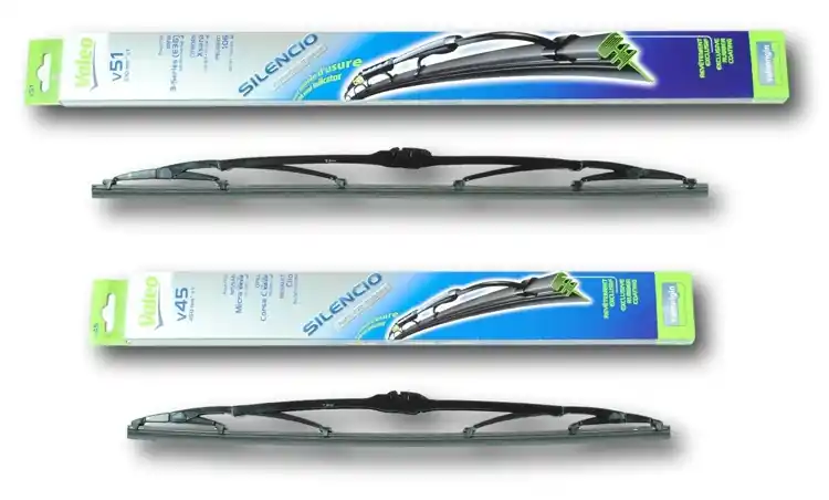 Nowe wycieraczki – zapakowane w oryginalne opakowanie producenta – cena zakupu dotyczy 1kompletu (strona kierowcy i pasażera).Wycieraczki Valeo Silencio na przednią szybę posiadają konstrukcję klasyczną i zbudowane są z metalowych przegubów. Specjalny skład gumy sprawia, że doskonale spisują się w każdych warunkach atmosferycznych. Guma posiada specjalne struktury(kanaliki) do rozprowadzania „płynu do spryskiwaczy” po całej powierzchni szyby. Ponadto guma wycieraczki pokryta  została specjalną warstwą grafitu zapewniającą optymalne wycieranie szyby. Gama wycieraczek Valeo Silencio to najwyżej sklasyfikowana gama klasycznych wycieraczek firmy Valeo. Wycieraczki posiadają wskaźnik zużycia, który stopniowo zmienia kolor z czarnego na żółty, sygnalizując potrzebę ewentualnej ich wymiany. Wycieraczki montuje się bardzo szybko i sprawnie; obrazkowa instrukcja montażu znajduje się na ich opakowaniu.Zalety wycieraczek Valeo Silencio:- bardzo łatwy montaż- precyzyjne wycieranie szyby- najwyższa jakość wykonania oraz zastosowanych materiałówJak dbać o wycieraczki:- pamiętaj, aby dbać o gumę wycieraczki usuwając z niej brud, owady itp., które osiadły podczas jej pracy (wykorzystać można do tego łagodny detergent); zapominanie o usuwaniu zanieczyszczeń, może doprowadzić do uszkodzenia gumy wycieraczki- nigdy nie używaj wycieraczek, gdy szyba jest sucha;  tarcie gumy po suchej szybie może doprowadzić do szybkiego jej zużycia- jeżeli wycieraczka na szybie podskakuje, może to być oznaką, że ramię wycieraczki jest skrzywione; w takim przypadku należy dokonać jego regulacji- jeżeli planujesz pozostawienie samochodu na słońcu przez kilka dni, ustaw wycieraczki tak, aby nie stykały się z szybą- po wizycie na myjni, pamiętaj, aby zawsze dokładnie oczyścić szybę, ponieważ znajdujący się na niej wosk, może powodować przeskakiwanie wycieraczki- pamiętaj również, aby nie uruchamiać wycieraczek na zamarzniętej szybie, może to bowiem doprowadzić do ich uszkodzenia lub oderwania gumy od mocowania.