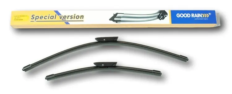 Nowe wycieraczki ;  zapakowane woryginalne opakowanie producenta. Cena zakupu dotyczy 1kompletu (stronakierowcy i pasażera).Wycieraczki Good Rain na przednią szybęsamochodu posiadają  konstrukcję bezprzegubową. Guma w wycieraczkachpokryta jest specjalną powłoką, dzięki, której szyba jest bardzo dobrzeczyszczona. Na całej długości wycieraczki znajduje się spojler, któregozadaniem jest dociskanie jej do powierzchni szyby, nawet przy dużychprędkościach. Duży wpływ na dobre przyleganie wycieraczek do szyby samochodu marównież zastosowana w ich konstrukcji specjalna prowadnica, dzięki, której siłanacisku jest  regularnie rozłożona na całej długości pióra wycieraczki. Stałynadzór nad  procesem  produkcji oraz wysokiej jakości produkty użytedo ich wykonania sprawiają , że wycieraczki te, profesjonalnie spisują się wkażdych warunkach atmosferycznych.   Zalety wycieraczek Good Rain:- bardzo łatwy montażna ramiona- wysoka jakość za przystępną cenę- skuteczne wycieranie szyby- zmniejszenie szumu powietrza poprzez bardziejopływowy kształt- zaawansowana technologia i nowoczesnywyglądJak dbać o wycieraczki:- pamiętaj, aby dbać o gumę wycieraczkiusuwając z niej brud, owady itp., które osiadły podczas jej pracy (wykorzystaćmożna do tego łagodny detergent); zapominanie o usuwaniu zanieczyszczeń, możedoprowadzić do uszkodzenia gumy wycieraczki- nigdy nie używaj wycieraczek, gdyszyba jest sucha;  tarcie gumy po suchej szybie może doprowadzić doszybkiego jej zużycia- jeżeli wycieraczka na szybiepodskakuje, może to być oznaką, że ramię wycieraczki jest skrzywione; w takimprzypadku należy dokonać jego regulacji- jeżeli planujesz pozostawieniesamochodu  na słońcu przez kilka dni, ustaw wycieraczki tak, aby niestykały się z szybą- po wizycie na myjni, pamiętaj, abyzawsze dokładnie oczyścić szybę, ponieważ znajdujący się na niej wosk, możepowodować przeskakiwanie wycieraczki- pamiętaj również,aby nie uruchamiać wycieraczek  na zamarzniętej szybie; może to bowiemdoprowadzić do ich uszkodzenia lub oderwania gumy od mocowania.