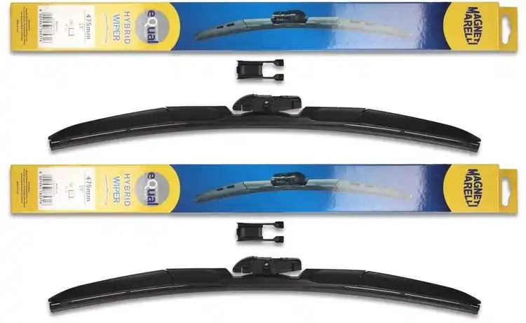 Nowe wycieraczki; zapakowane w oryginalne opakowanie producenta. Cena zakupu dotyczy 1kompletu (strona kierowcy i pasażera).  Wycieraczki hybrydowe Magneti Marelli to wyjątkowa konstrukcja i najwyższa jakość materiałów:- Guma – ponad 50% kauczuku naturalnego z grafitową powłoką; wewnątrz gumy podwójna stal nierdzewna.- Złącze – materiał POM (tworzywo termoplastyczne o wysokiej wytrzymałości mechanicznej i odporne na ciepło)- Spojler – materiał ABSWycieraczki montuje się bardzo szybko i sprawnie; obrazkowa instrukcja montażu znajduje się na ich opakowaniu.Zalety wycieraczek hybrydowych Magneti Marelli1.Jeden uniwersalny adapter w wycieraczkach hybrydowych Magneti Marelli znajduje zastosowanie w czterech różnych ramionach wycieraczek, co sprawia, że pasują do większości modeli samochodów.2. Sztywne gumowe pióro z grafitową powłoką w wycieraczce hybrydowej Magneti Marelli zapewnia bardziej skuteczne wycieranie powierzchni szyby.3. Wycieraczki hybrydowe Magneti Marelli dzięki zaawansowanej technologii, mogą zastąpić dotychczasowe tradycyjne wycieraczki w starszych modelach samochodów, a ich wymiana jest szybka i łatwa.4. Wycieraczki hybrydowe Magneti Marelli są odporne na niekorzystne warunki atmosferyczne ; zakres temperatury, w których ich praca odbywa się bez zakłóceń to -25ºC do +50ºC.5. Jakość materiałów użytych do produkcji wycieraczek hybrydowych Magneti Marelli zapewnia ich wytrzymałość oraz cichą pracę.6. Nowoczesny design zastosowany w wycieraczkach hybrydowych Magneti Marelli sprawia, że to jedne z bardziej poszukiwanych wycieraczek na świecie.  Jak dbać o wycieraczki:- pamiętaj, aby dbać o gumę wycieraczki usuwając z niej brud, owady itp., które osiadły podczas jej pracy (wykorzystać można do tego łagodny detergent); zapominanie o usuwaniu zanieczyszczeń, może doprowadzić do uszkodzenia gumy wycieraczki- nigdy nie używaj wycieraczek, gdy szyba jest sucha;  tarcie gumy po suchej szybie może doprowadzić do szybkiego jej zużycia- jeżeli wycieraczka na szybie podskakuje, może to być oznaką, że ramię wycieraczki jest skrzywione; w takim przypadku należy dokonać jego regulacji- jeżeli planujesz pozostawienie samochodu  na słońcu przez kilka dni, ustaw wycieraczki tak, aby nie stykały się z szybą- po wizycie na myjni, pamiętaj, aby zawsze dokładnie oczyścić szybę, ponieważ znajdujący się na niej wosk, może powodować przeskakiwanie wycieraczki- pamiętaj również, aby nie uruchamiać wycieraczek na zamarzniętej szybie; może to bowiem doprowadzić do ich uszkodzenia lub oderwania gumy od mocowania.
